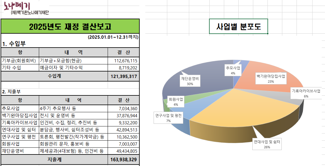 2025년 1년 결산보고(사업별 분포도)
