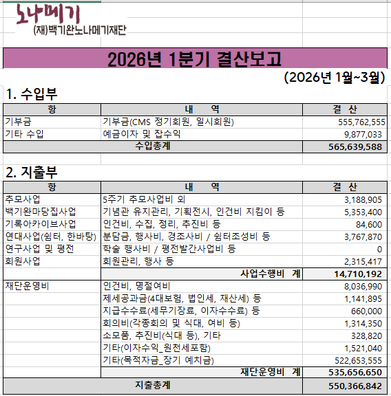 2026년 1분기 결산보고
